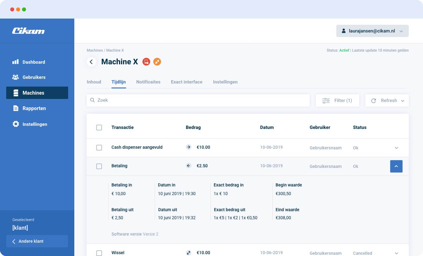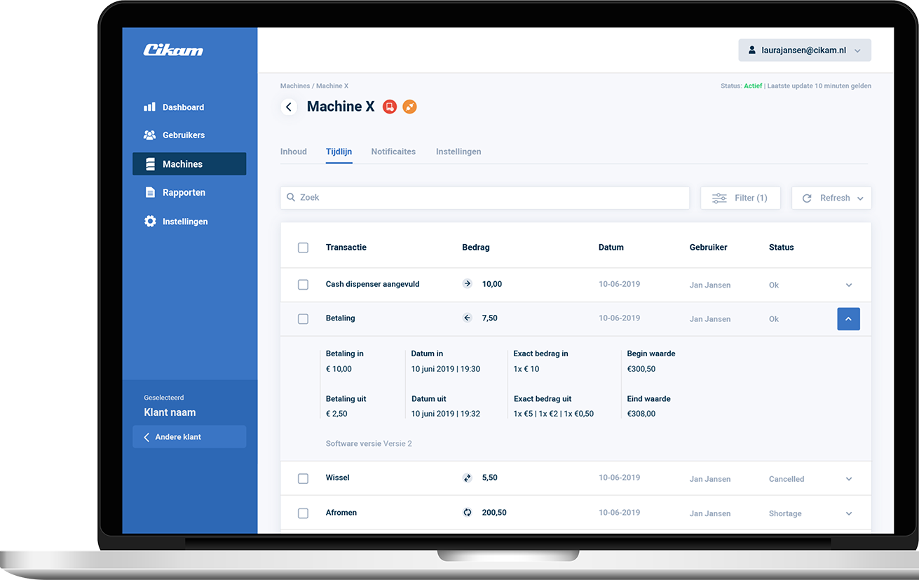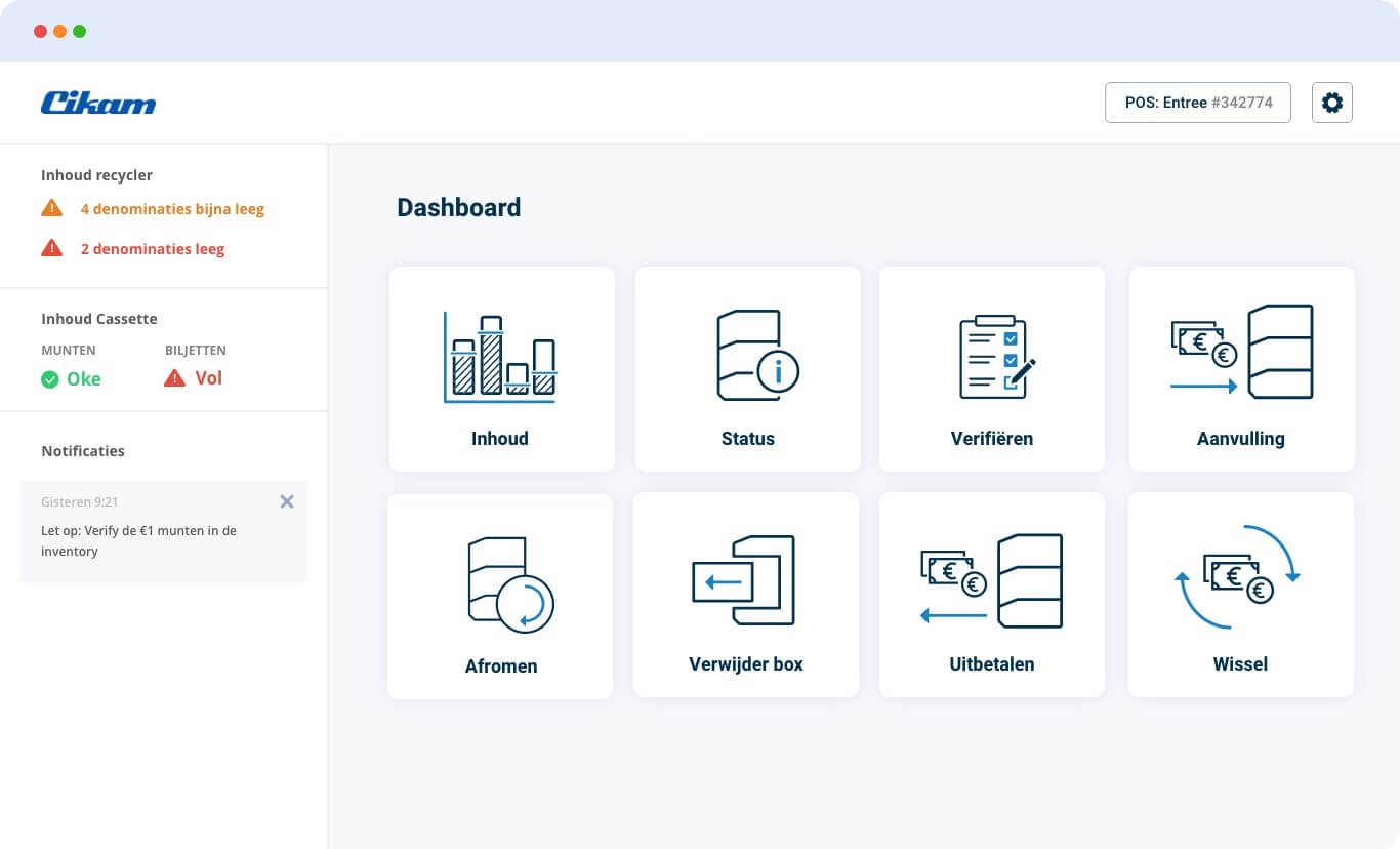 Het implementatieproces is nu vele malen sneller; in plaats van enkele maanden nu enkele dagen. De applicatie is goed schaalbaar voor verschillende schermgroottes. In het systeem kan er onder andere notificaties worden ontvangen bij het bereiken van een bepaalde geldvoorraad en over de status van het systeem. Door het CD kunnen er dagelijks rapporten worden ingezien en kan de eindgebruiker de actuele inhoud van de machines zien. Daarnaast heeft ook Cikam inzicht of het systeem naar behoren werkt.